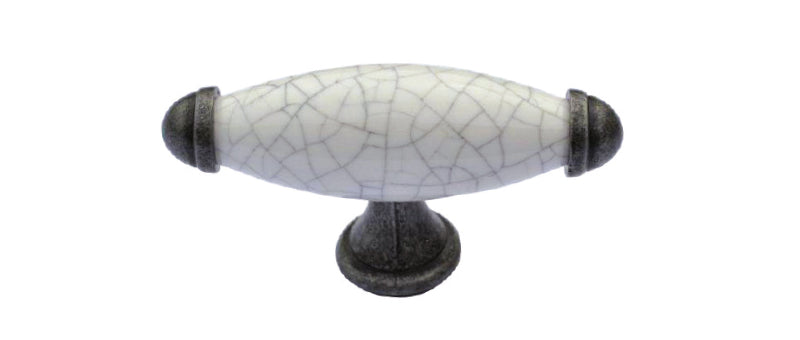 Elegant porcelain centre with sleek black iron finishes on both ends and base. Featuring a unique crazed design for added texture.