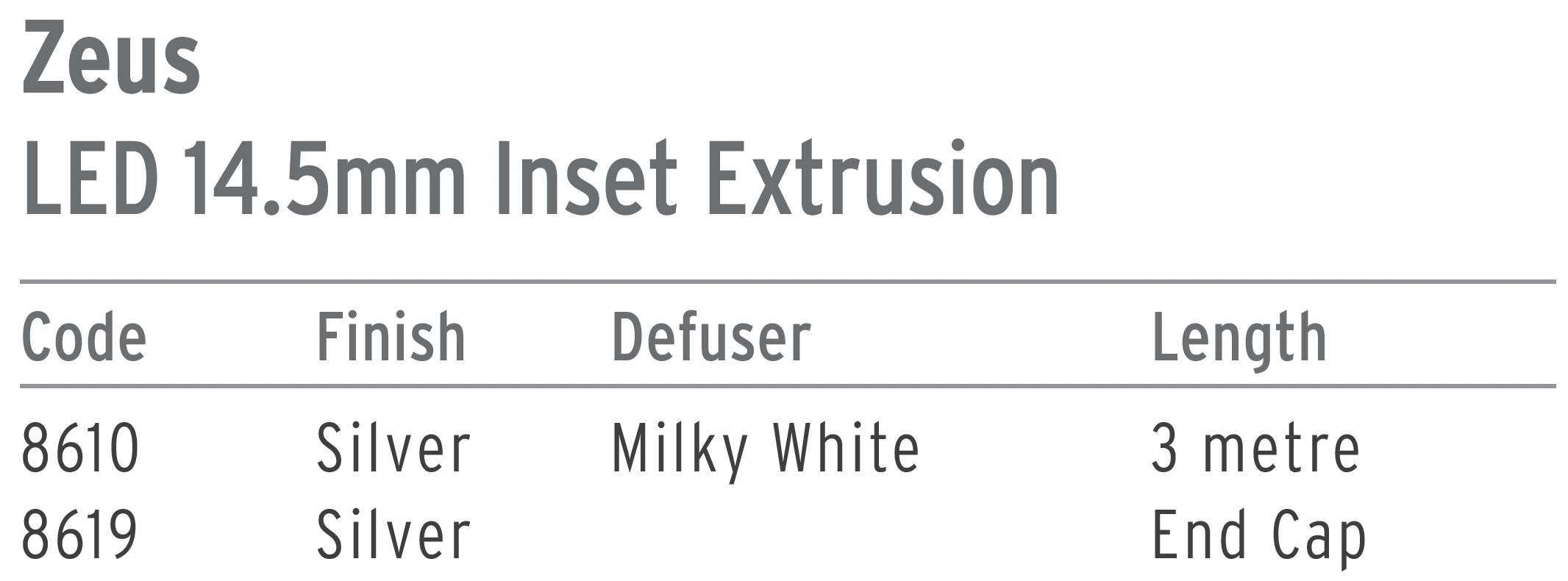 Zeus LED Inset Extrusion 7.5 & 14.5mm